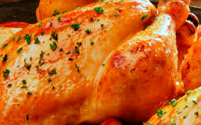 Tempere o frango, já descongelado, com todos os temperos e deixe descansar por, no mínimo, três horas, melhor que seja de véspera. Atente para que o tempero atinja toda a carne, esfregando-o por toda a ave. Antes de levar ao forno, espalhe sobre o frango uma colher de sopa cheia de manteiga. Deixe-o na assadeira com o peito para baixo. Lembre-se de regar com o molho que se forma na assadeira, de meia em meia hora. Vire o frango, com a ajuda de um garfo, após cerca de uma hora que esteja assando, para que o peito doure. Deixe-o em forno alto, por cerca de 1 hora e meia, até que fique bem dourado.